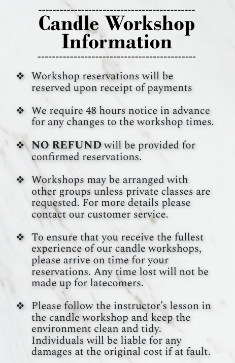 Please note that we may arrange other group/customers in same class if your group is less than 2 ppl and read the workshop information before booking.
